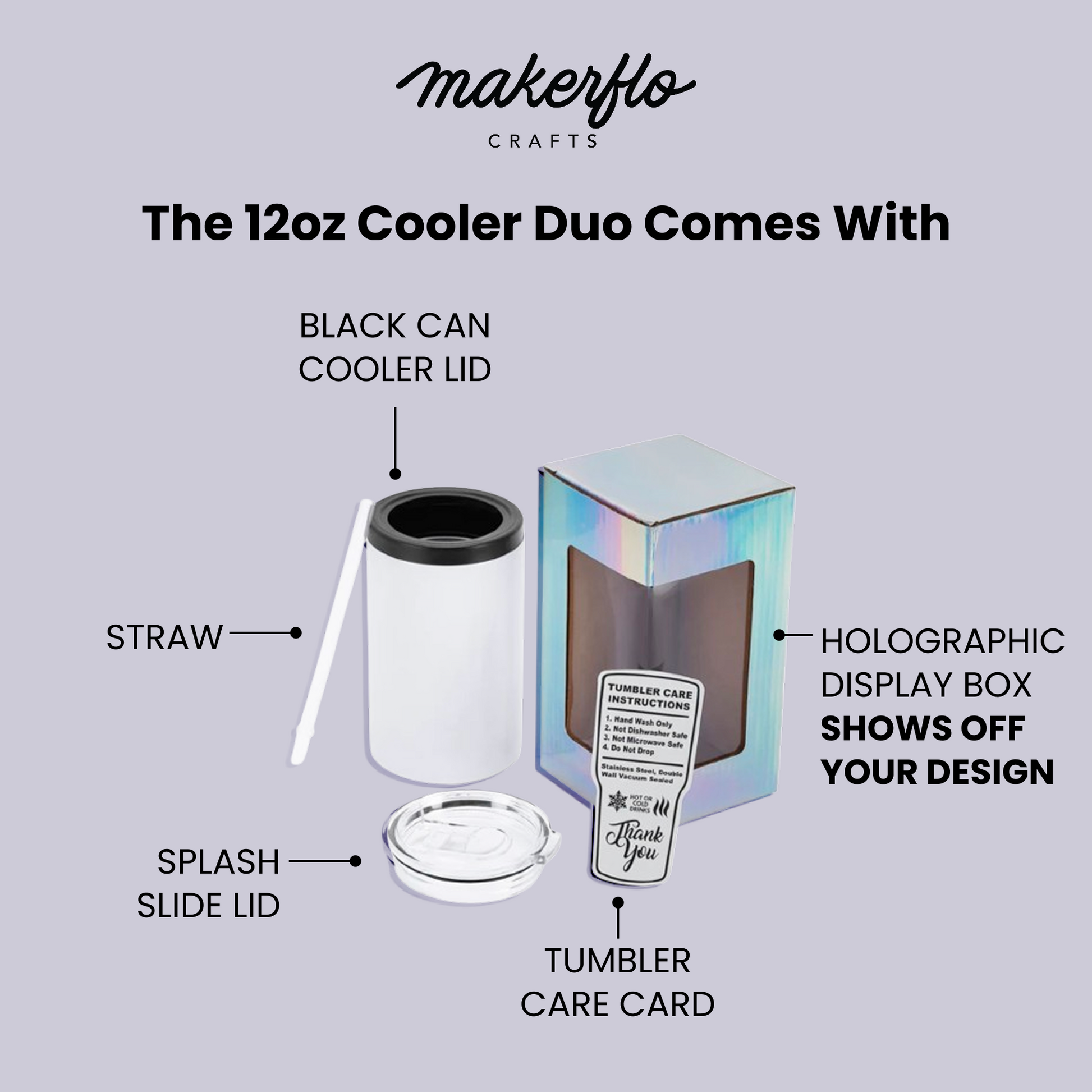 MakerFlo's 12oz Thick Duozie is a 2 in 1 product! A stainless steel can cooler, coated for sublimation to hold your favorite 12oz beverage. Fits standard 12oz beer/soda cans and standard beer bottles. It’s also a 12oz tumbler with straw and slide lid! Use your sublimation skills to create beautiful designs and enjoy a refreshing beverage in style!